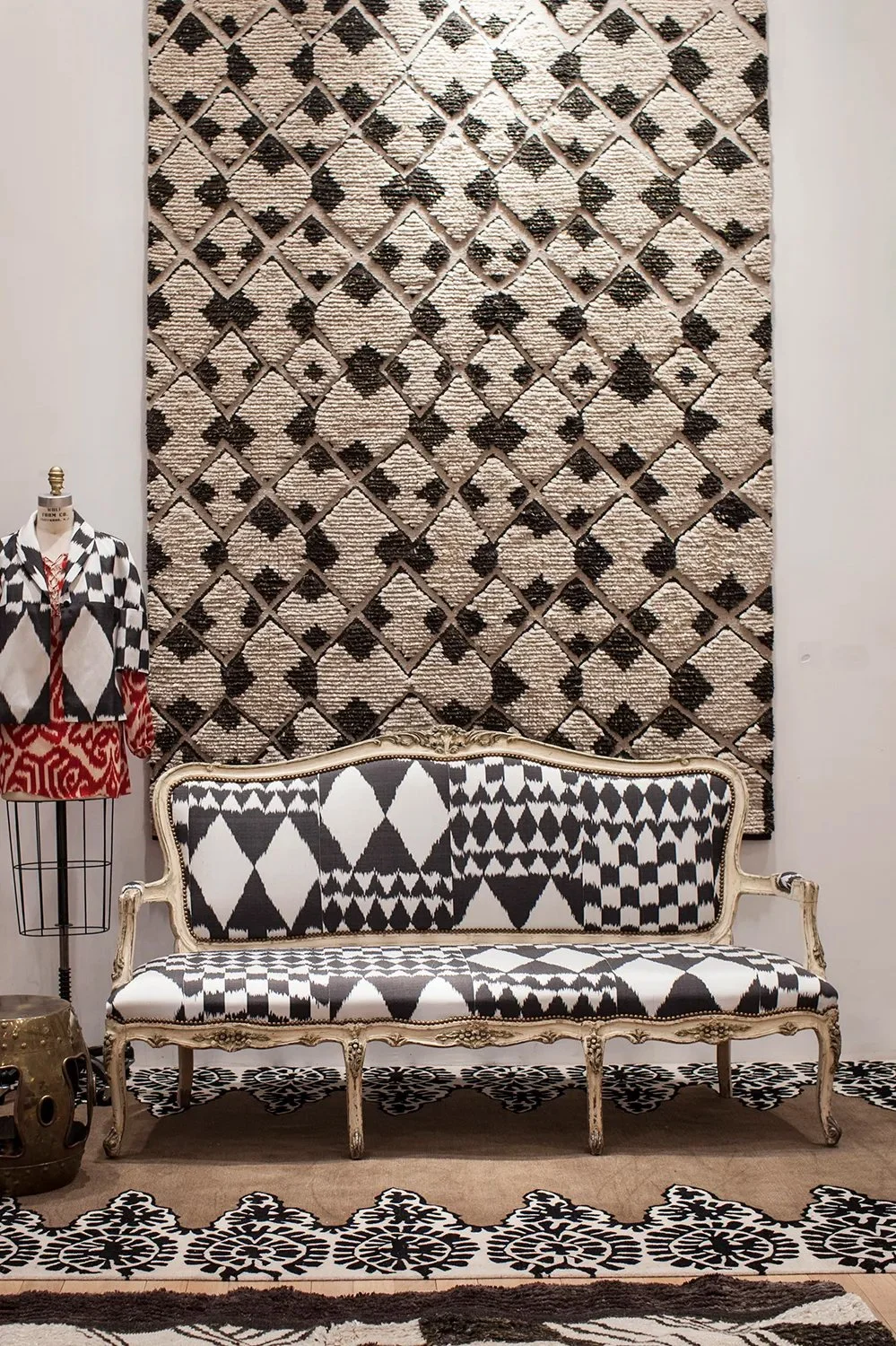 It would be easy to dismiss the designer’s inadequacies given that, since 1997, the name Madeline Weinrib has become synonymous with luxurious, globally sourced fabrics and rugs inspired by travels throughout Africa, Asia and Europe. A true textile artist, she has become the de facto provider of the “Gypset” lifestyle translated into the home, where her Moroccan, African and Nepalese fabrics, carpets and objects fuse classic tribal design with a distinctly modern approach. That she should feel any insecurity is almost laughable, but even after 17 years in business, Ms. Weinrib constantly seeks new design opportunities that shake her to the core again and again. After years of resistance, she recently launched a collection of outdoor fabrics. And with Barneys, she opened a holiday pop-up shop where she introduced an accessories collection of cosmetics totes and soft clutches, all with the colorful, wanderlust spirit that reflects her voice in the design world.